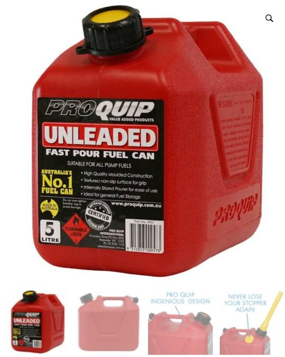 For Ulp Fuel Only. Australian Made & Certified To Australian Standard As2906:2001. Comes With An Internally Stored Pourer That Will Not Get Contaminated With Dust Etc. And Pours Freely Without Glugging, Using The Breather On The Rear Of The Can.