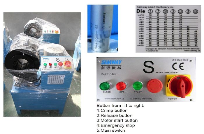 S51 240v 1 Phase Hose Crimping Machine. 1/8 ’’ To 2" (hydraulic Multi Wire Hose). Crimping Force 420 Ton. Crimping Accuracy 0.02mm. Standard Die Sets: 10 14 17 20 24 28 33 38 44 50 56 62 68 Other Die Sizes Also Available. Weight: 250kg. Warranty: 1yr