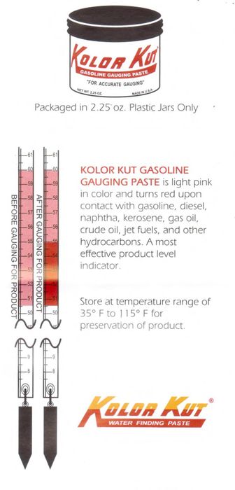 Kolor Kut Gauging Paste 63.8g (2.25oz). Gasoline Gauging Paste Is Light Pink In Colour And Turns Red Upon Contact With Gasoline, Diesel, Naphta, Kerosene, Gas, Oil, Crude Oil, Jet Fuels And Other Hydrocarbons. (12 Units Per Box)