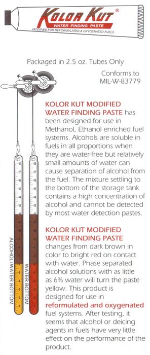 Modified. Dark Brown In Colour Turns Bright Red Upon Contact With Water. Used For Gauging Water Content In Methanol And Ethanol Enriched Fuel Systems.